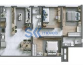 Apartamentos de 77,39 m² – 01 suíte + 02 dormitórios, amplo living integrado, churrasqueira e 01 vaga de estacionamento.